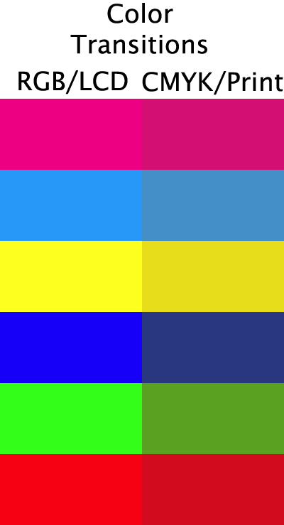 Design your documents and artwork destined for print media with the CMYK color palette. All current popular graphics and page editing applications let you choose colors from the RGB palette or the CMYK pallete. Unfortunately some software more than 3 years old may not have the CMYK palette available. Save your graphics with the color palette information embedded in the graphics file. Embedding color information is one of the “save options” for most file types in most graphics software. Obtain proofs and make adjustments. Designing within the CMYK palette will reduce your choice of colors, but it will give a more accurate design perspective for print media. Unlike LCD displays, print media colors can be enhanced with the wide variety of print media and textures available.